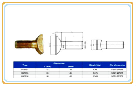 HS26/HS32 railway bolts for ribbed base plate are available in various dimension as below, as per UIS864-2